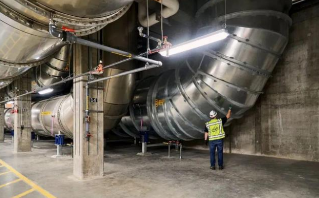 同樣,移動(dòng)大量液體和氣體也是一件重要的事。英特爾的頂級(jí)工廠大約有70英尺(21米)高,有巨大的風(fēng)扇幫助空氣循環(huán)到正下方的潔凈室。在潔凈室的下面是成千上萬的泵、變壓器、動(dòng)力柜、公用事業(yè)管道和與生產(chǎn)設(shè)備連接的冷水機(jī)。