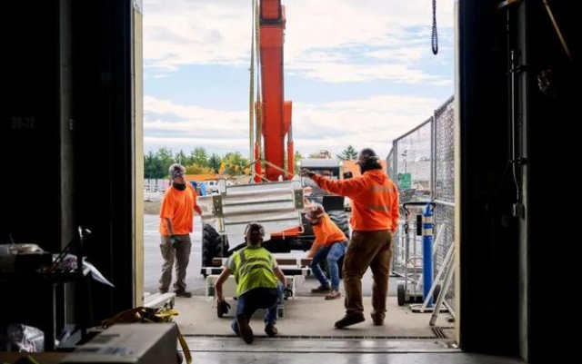 希爾斯伯勒的工人搬運(yùn)建筑材料?!?